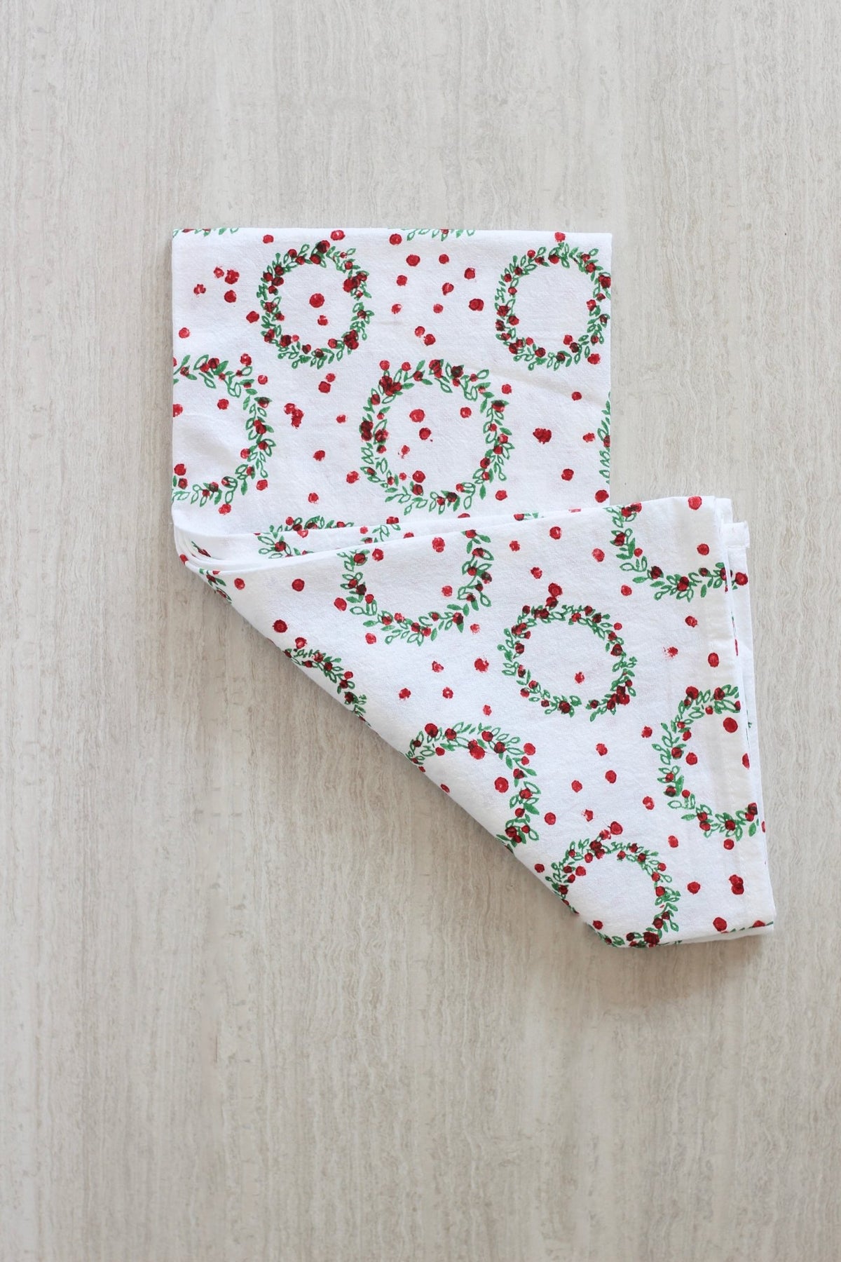 Tea Towel - Wreath, Evergreen & Red - The Mended Company