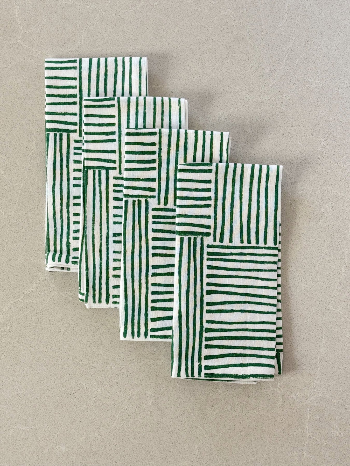 Dinner Napkins (set of 4) - Striped, Evergreen