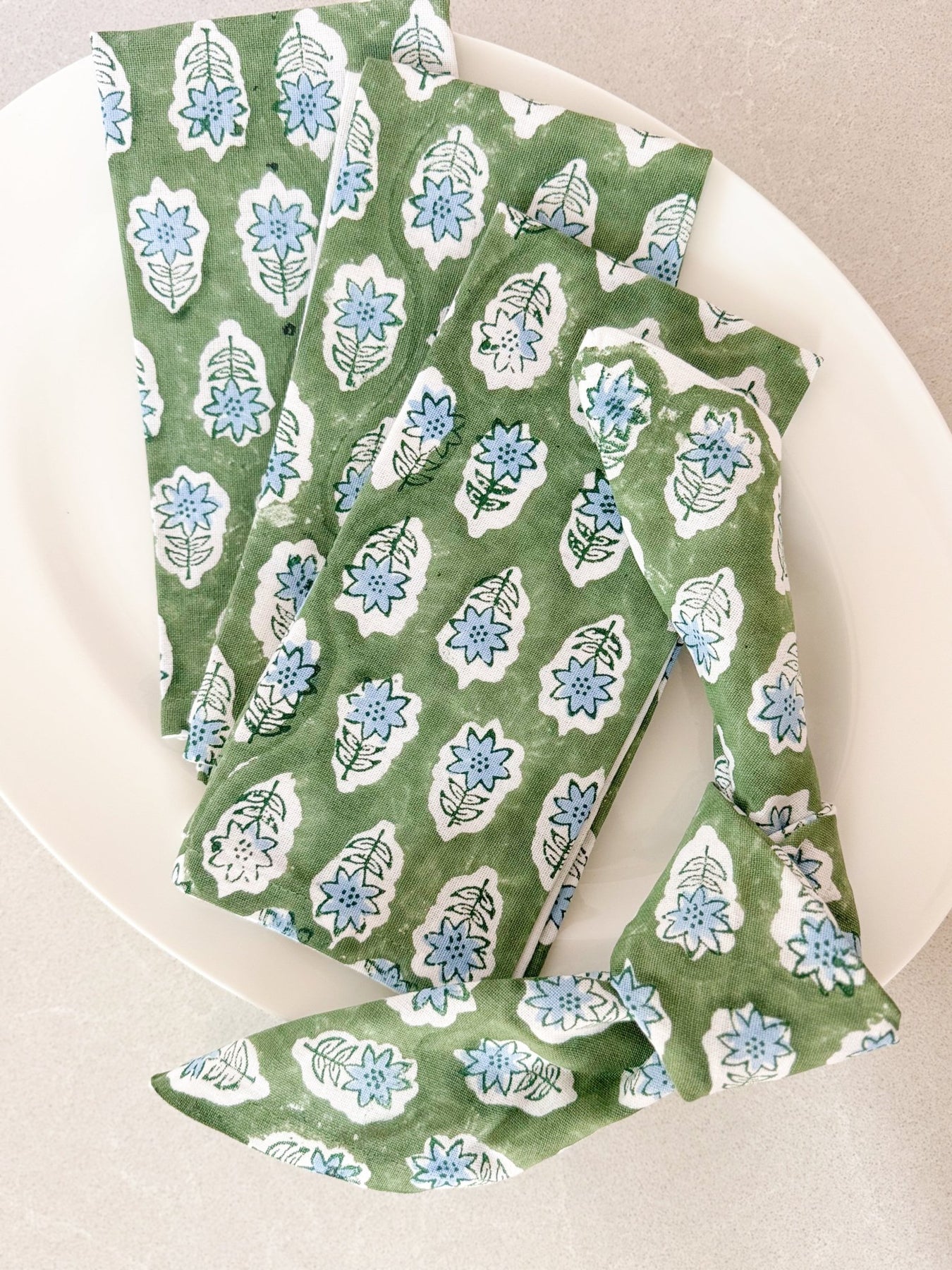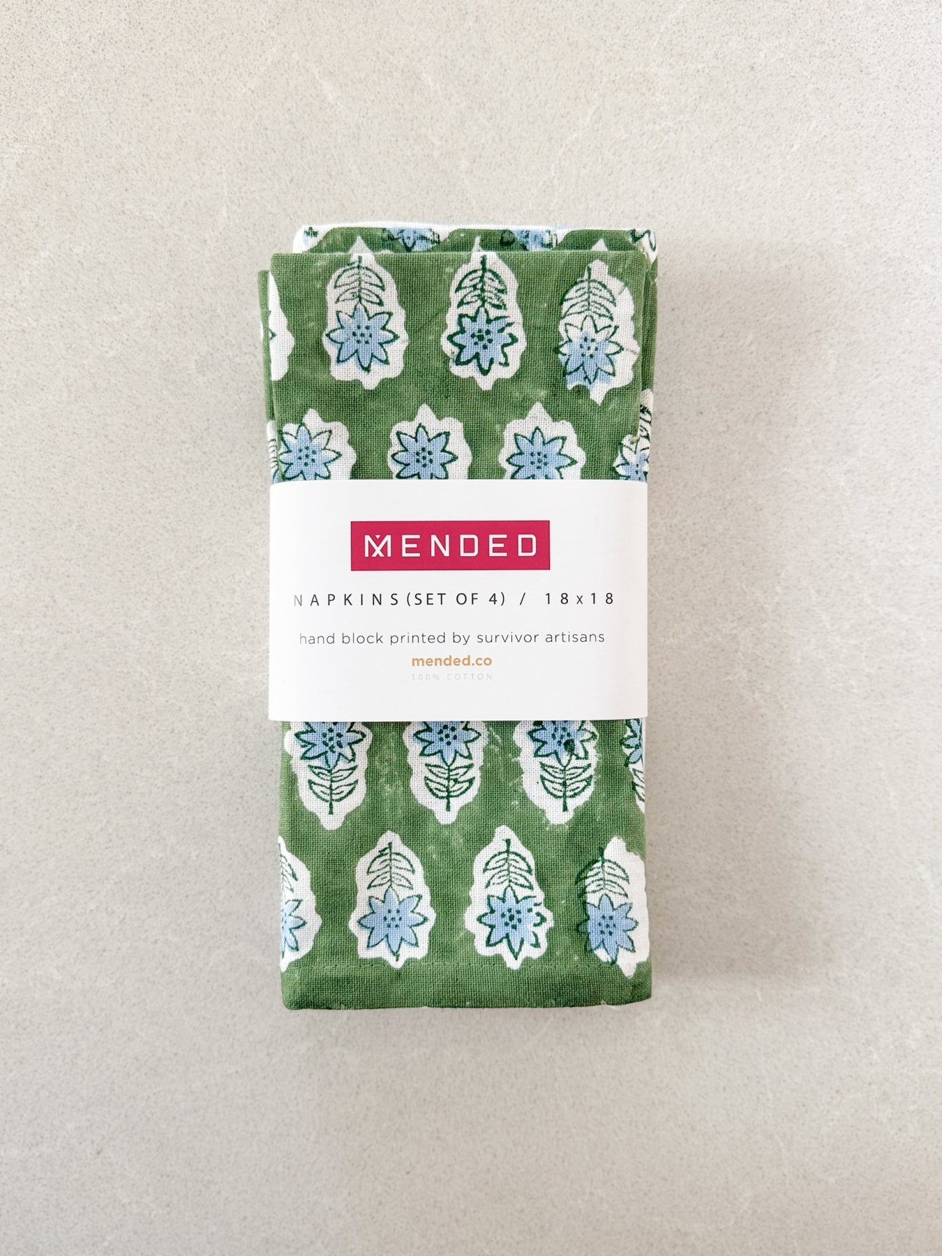 Dinner Napkins (set of 4) - Poinsettia, Sage & Uniform Blue - The Mended Company