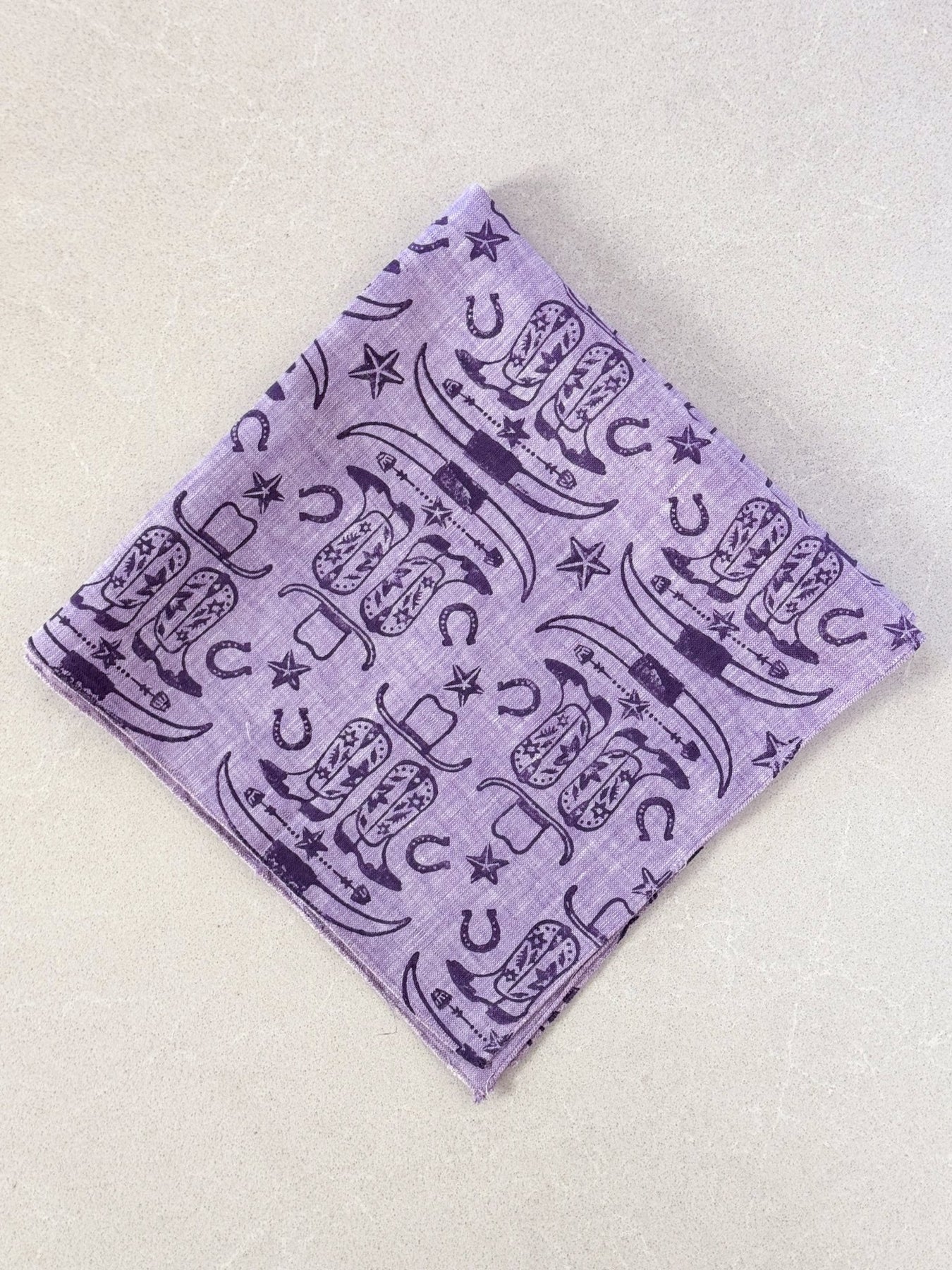Bandana - Light Purple Linen with Cowgirl, Purple