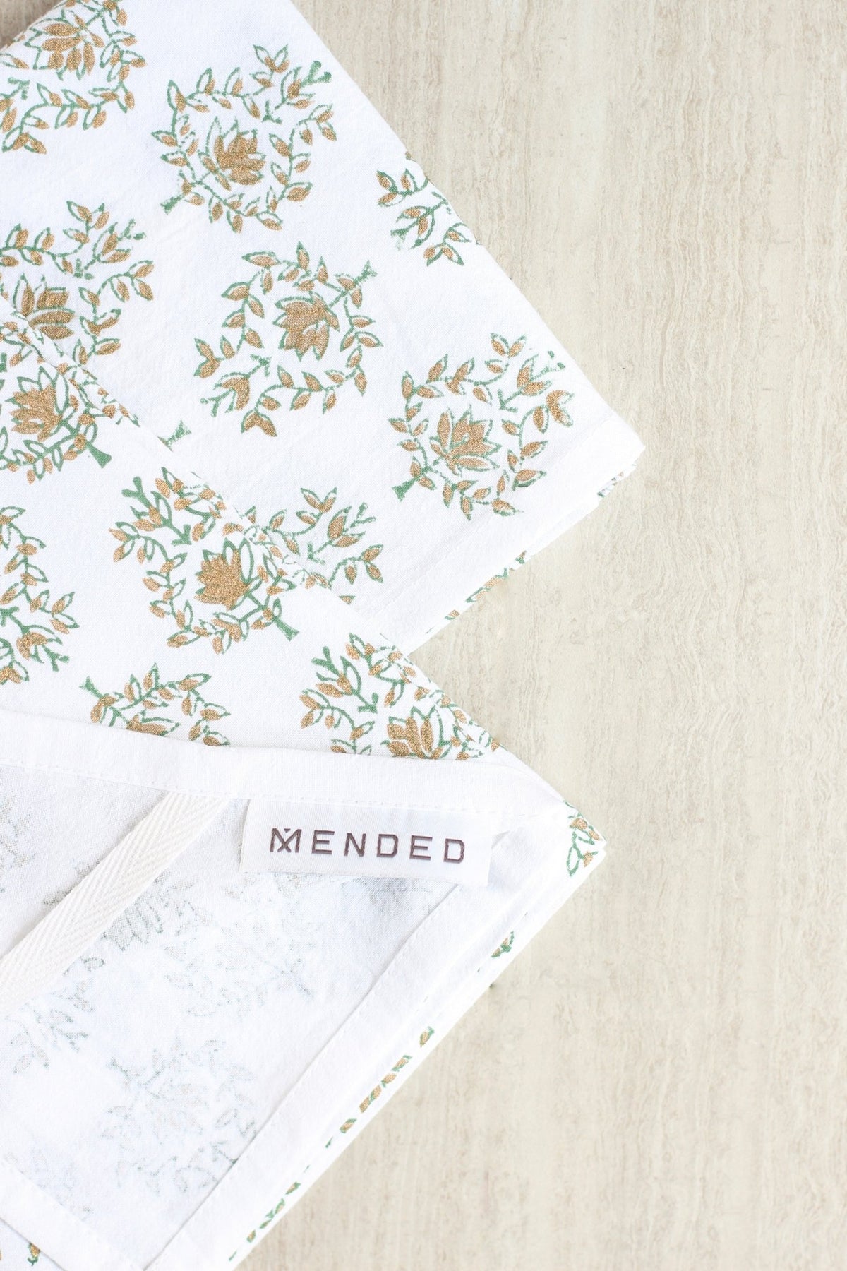 Nothing brightens up a kitchen or guest bathroom more than Mended's vibrant tea towels. Each tea towel is 100% floursack cotton and hand block printed to be a stunning decor item or a work horse to help you clean! Mix and match with any of our other Mended tea towel patterns to create your very own kitchen or bathroom style or create the most stunning gift for family and friends.